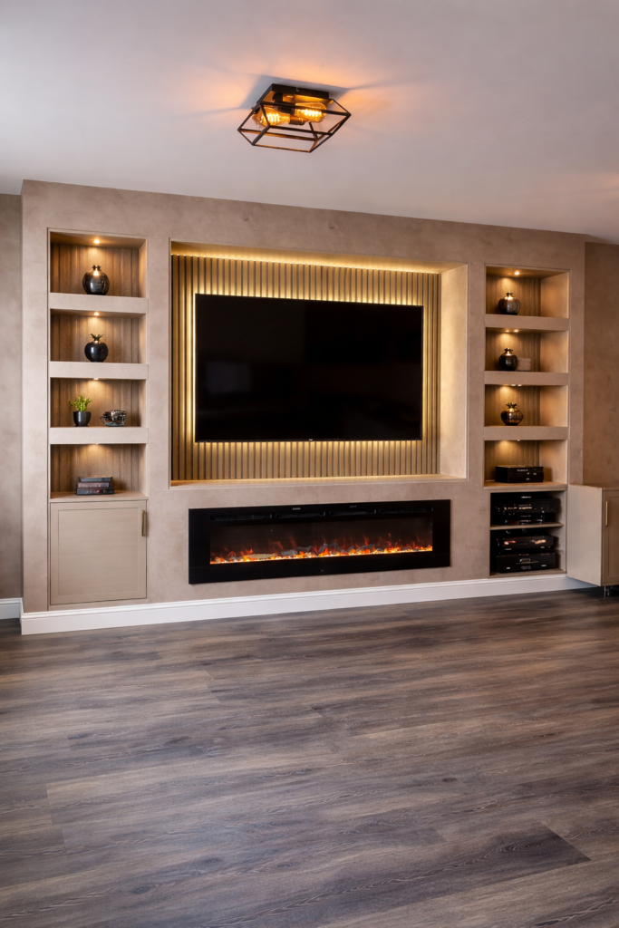 Creating stunning media walls that blend style with technology seamlessly.